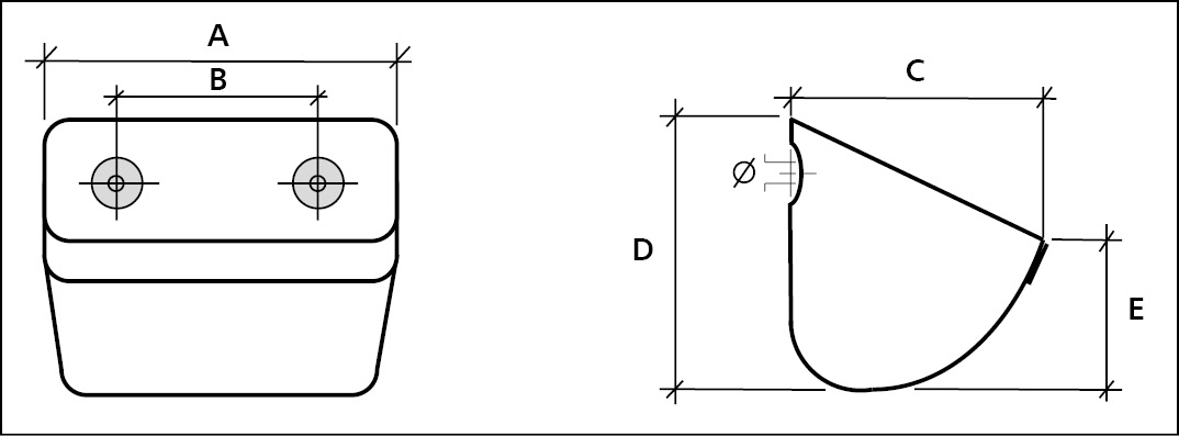 Cangilones termoplásticos ligeros de polietileno, poliamida.