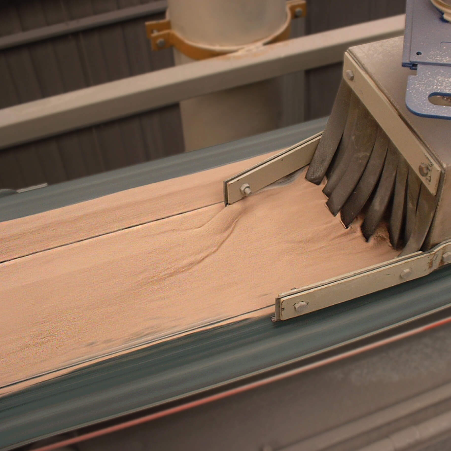 Nuestras bandas de las series Breda e Hipro son opciones populares para el transporte de la arcilla procesada a su salida de las moldeadoras, extrusoras, prensas y cortadoras (elaboración de tejas y ladrillos). Las bandas Breda con perfiles transversales y bordes de contención (Runer) son una manera eficiente de transporte inclinado de la arcilla en polvo.
